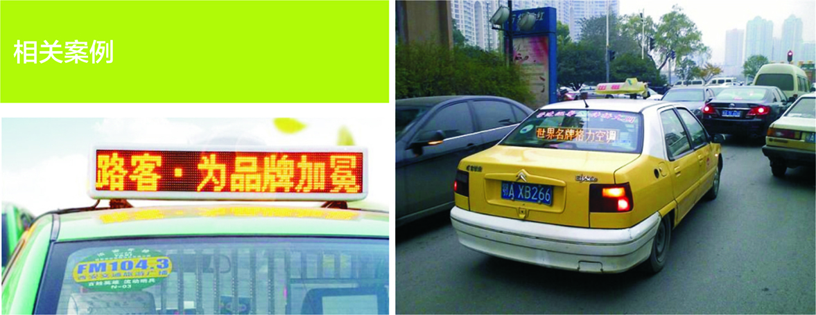 出租車車載無線LED顯示屏系統主要由車載LED顯示屏、無線LED控制卡、LED顯示屏控制軟件組成。配合城市出租車管理系統,可以顯示車輛信息,線路以及氣象,公告,廣告等媒體信息。