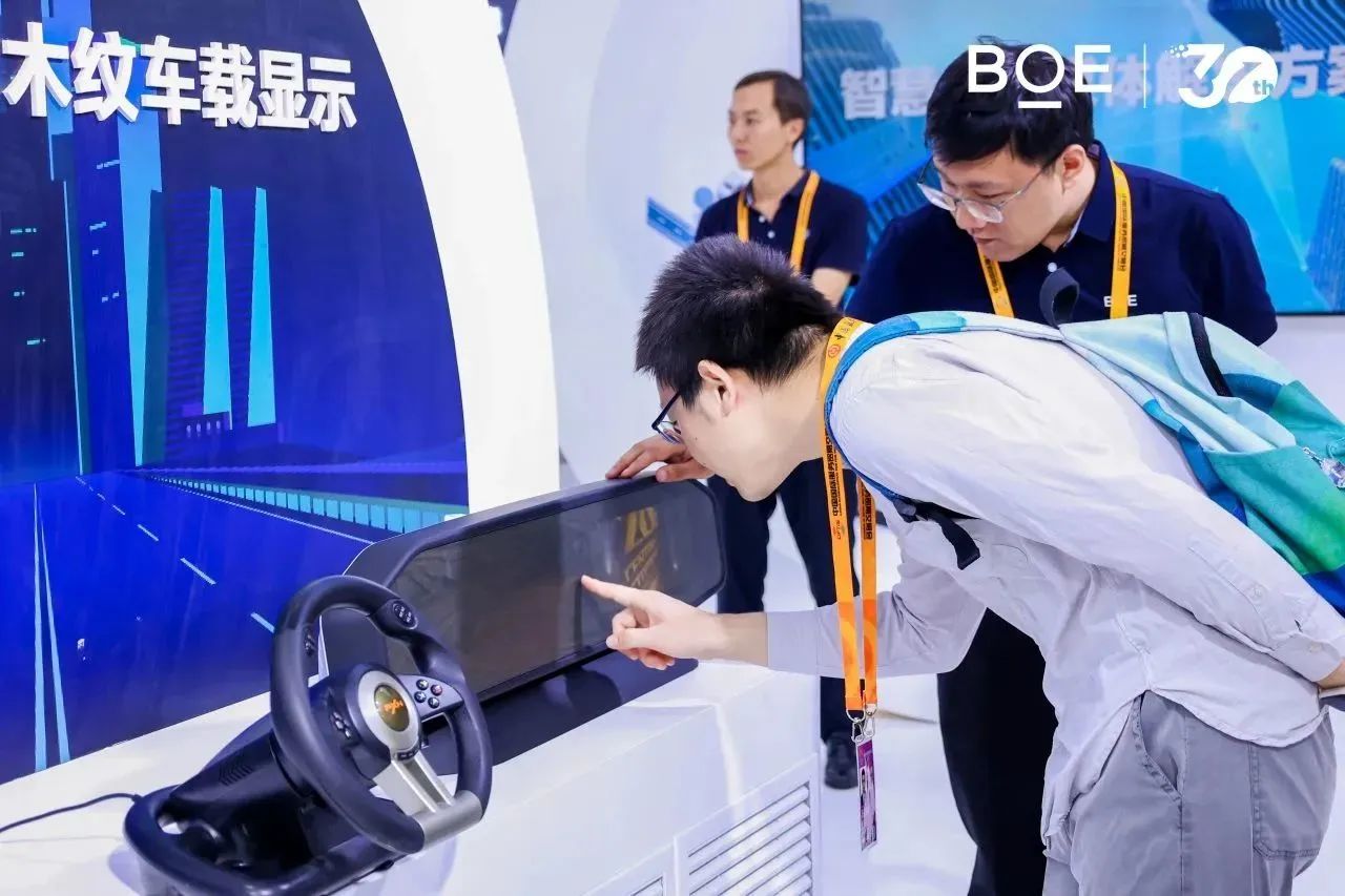 在智慧座艙領域,京東方全新推出的雙 12.3 英寸木紋智能表面隱藏顯示產品,采用 Mini LED 背光顯示,可使屏幕亮度大幅提升 50%,打造了逼真的仿木紋材質,息屏時的高端設計質感與座艙內飾融為一體,木紋蓋板還能滿足車載耐摩擦和耐腐蝕等高端實驗性要求。