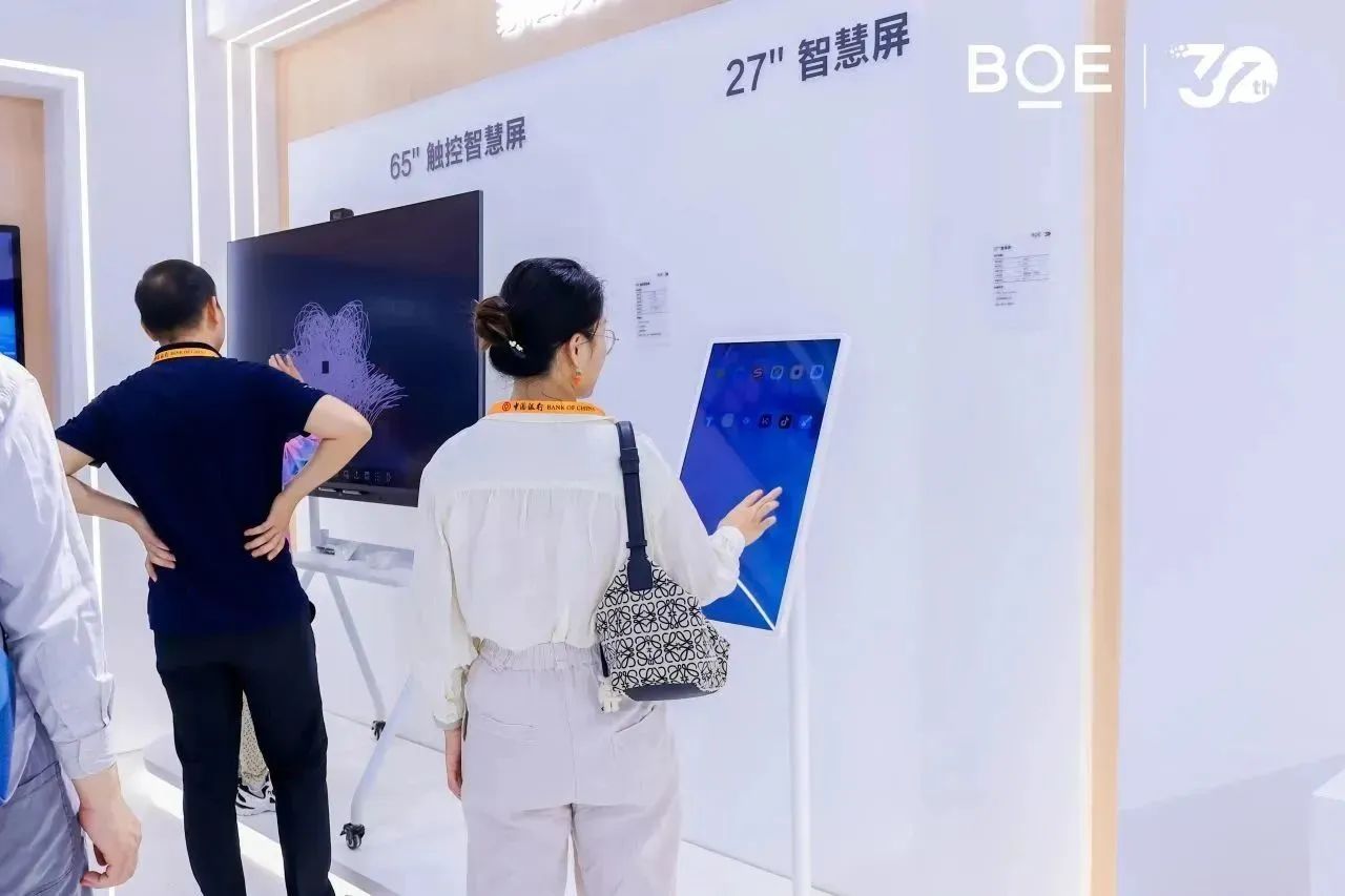 在會議辦公領域,京東方自然書寫技術可實現手寫筆跡的智能化預測,最低書寫延時可低至 23ms,接近人眼視覺暫留極限,同時還可實現筆跡美化、手寫體識別、圖形識別等多種智慧化功能;通過 BOE Share 多屏聯動軟件可實現一鍵投屏、多屏互動、多人交互,帶來高效的辦公體驗。此外,相較于傳統電子墨水屏只能呈現黑白兩色顯示,京東方全彩電子桌牌采用 7.4 英寸全彩 EPD 屏幕,搭配 BOE 會議管理系統,可實現會議內容一鍵刷新,帶來低碳高效的“無紙化”辦公環境。